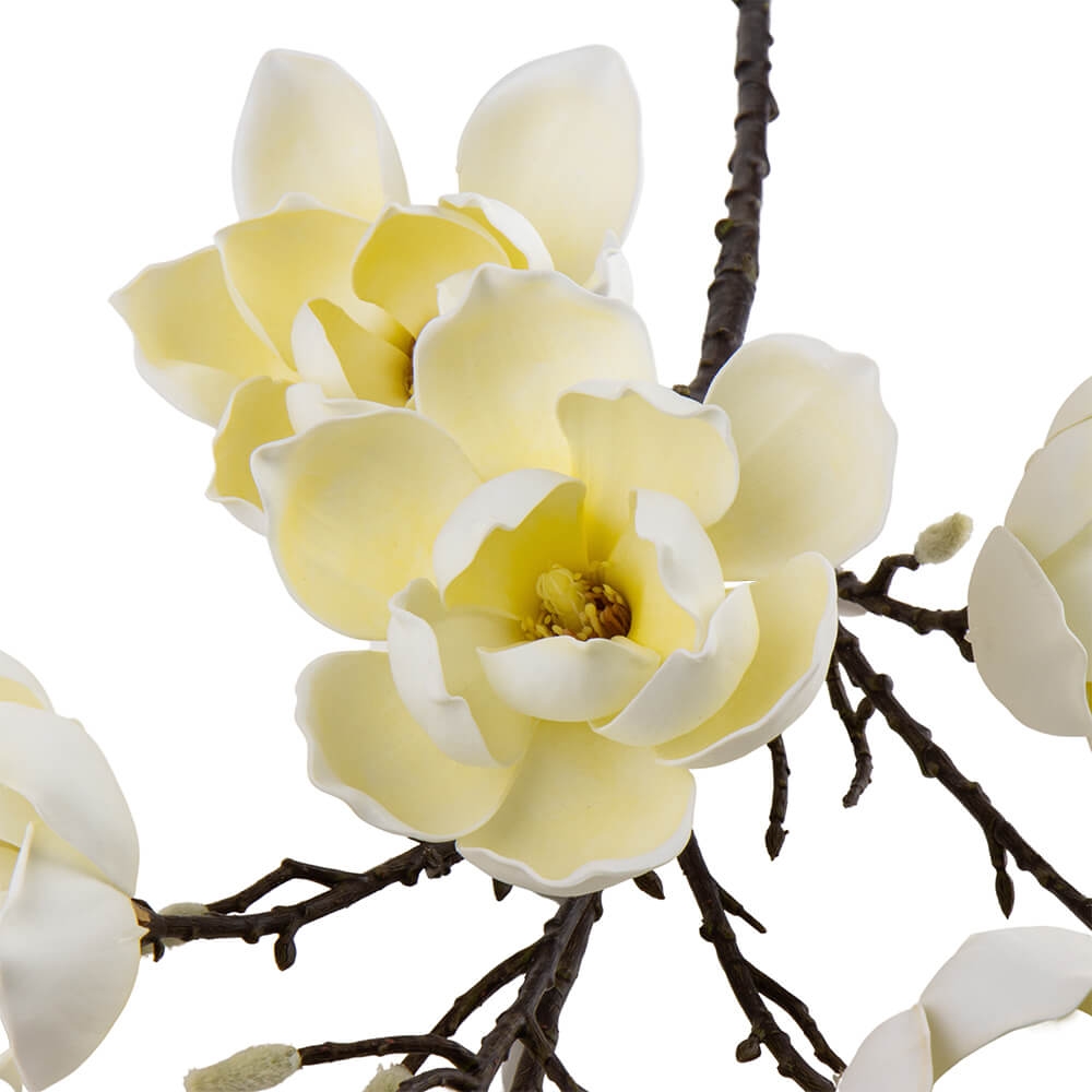 Искусственная ветвь магнолии – это реалистичная имитация ветви из живой магнолии, созданная из искусственных материалов. Она имеет детализированную структуру, имитирующую веточки, листья и цветы магнолии. Эта искусственная ветвь используется как декоративный элемент во флористике, дизайне интерьера или при украшении разнообразных мероприятий, добавляя натуральный шарм и элегантность к пространству. Высота – 125 см.