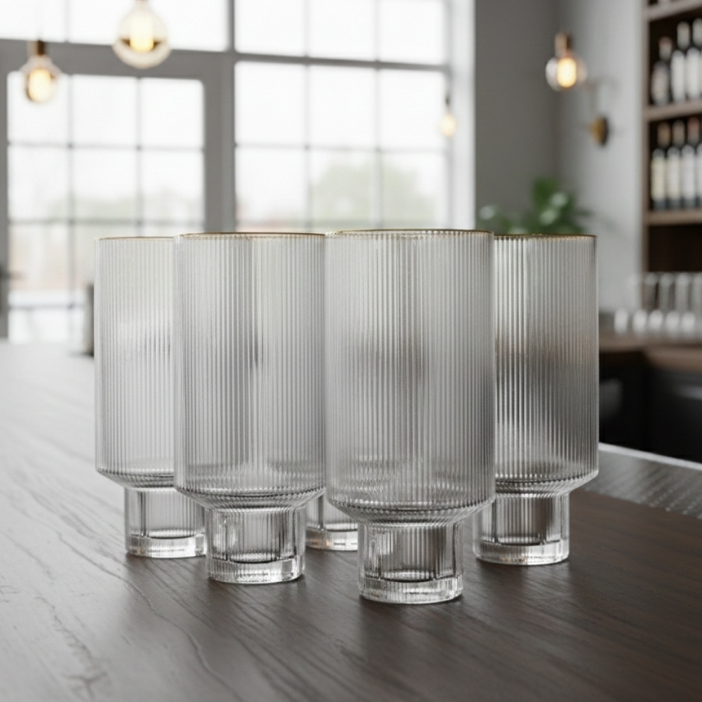 Объем стаканов – 300 мл, высота – 14 см. Стаканы упакованы в крафтовую коробку. В наборе 6 стаканов. Стильные стаканы – это отличный подарок для людей, которые ценят изысканность и элегантность в сервировке. Этот набор стаканов можно подарить как мужчинам, так и женщинам, которые ценят качественные и стильные предметы в интерьере. Стаканы с изысканной золотой обводкой идеально подходят для торжественных моментов и праздничных вечеров. Будучи частью интерьера, эти стаканы добавят шарма и эстетики любому мероприятию. Их можно использовать для подачи и удовольствия любимыми напитками, такими как лимонады, сок, коктейли и т.д.