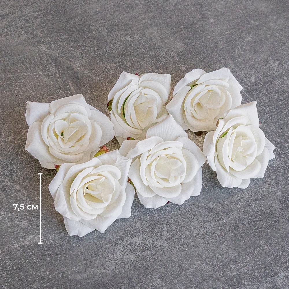 Диаметр – 7,5 см, высота – 4,5 см. Искусственная розовая головка с плотным бутоном классической формы станет изысканным элементом любой флористической композиции. Лепестки и листья изготовлены из качественной ткани, которая хорошо держит форму и создает реалистичный вид. Основание оснащено пластиковым хвостиком, облегчающим фиксацию в декорациях. Идеально подходит для оформления свадеб, фотозон, витрин и интерьерных решений в сегменте HoReCa.