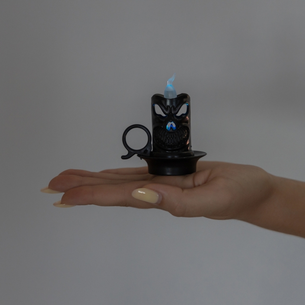 Высота – 8 см, диаметр – 3 см. В упаковке 12 шт. Батарейки в комплекте. Свечи LED – идеальный акцент для создания жуткой, но атмосферной подачи в декоре. Свечи излучают холодный синий свет и теплый оранжевый, прекрасно подходящий для тематических вечеринок, витрин, фотозон и праздничной сервировки. Оригинальный дизайн делает их настоящим хэллоуинским must-have. Можно использовать многократно.