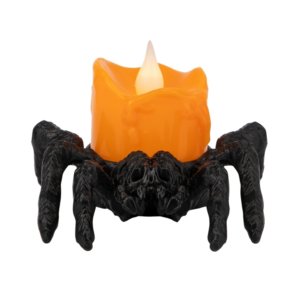 Высота – 5 см, диаметр – 4 см. В упаковке 12 шт. Батарейки в комплекте. Свеча LED в стиле Геловина с декоративным пауком – идеальный акцент для создания жуткой, но атмосферной подачи в декоре. Компактная и эффектная, благодаря имитации стекающего воска выглядит удивительно реалистично. Свеча излучает мягкий теплый свет, прекрасно подходящий для тематических вечеринок, витрин, фотозон и праздничной сервировки. Декоративная основа в виде черного паука придает изделию характер и делает его настоящим хэллоуинским must-have. Можно использовать многократно.
