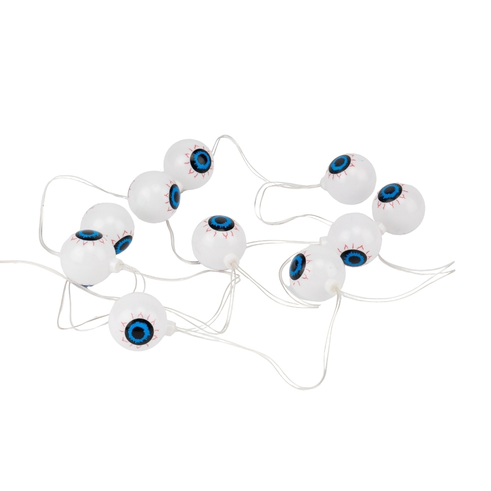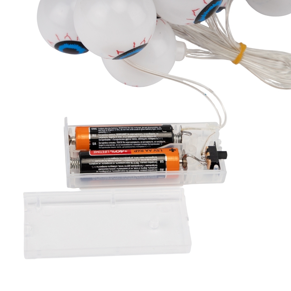 Длина - 200 см, диаметр 1 светового элемента - 4 см. Оригинальная гирлянда в виде глаз - то, что нужно для создания по-настоящему жуткой атмосферы на Хэллоуин! АА, в комплект не входят) позволяет разместить гирлянду в любом месте — на входе, на столе, в интерьере фотозоны или над камином. Идеальный декор для тематических вечеринок, ивентов, фотозон и оформления залов.