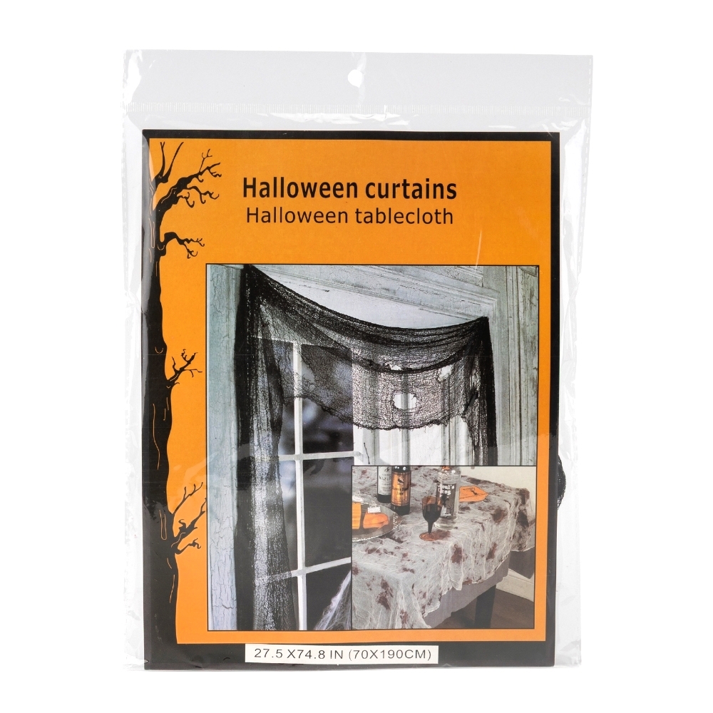 Длина – 190 см, ширина – 70 см. Полупрозрачная черная штора создает эффект зловещей паутины и добавляет мистической атмосфере любому пространству — будь то окно, дверной проем, стена или даже праздничный стол. Универсальное использование: может служить в качестве шторы, скатерти или драпировки для фотозоны. Легкая и воздушная ткань красиво свисает, создавая ощущение заброшенности и старинности. Идеально для декораторов и тематических вечеринок.