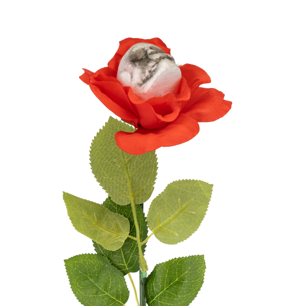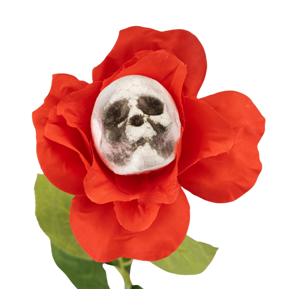 Высота - 64 см, диаметр - 8 см. Добавьте каплю жуткой эстетики к вашему праздничному убранству с этим необычным цветком. Яркая роза в готическом стиле скрывает в своем сердце череп, создавая впечатляющий эффект.