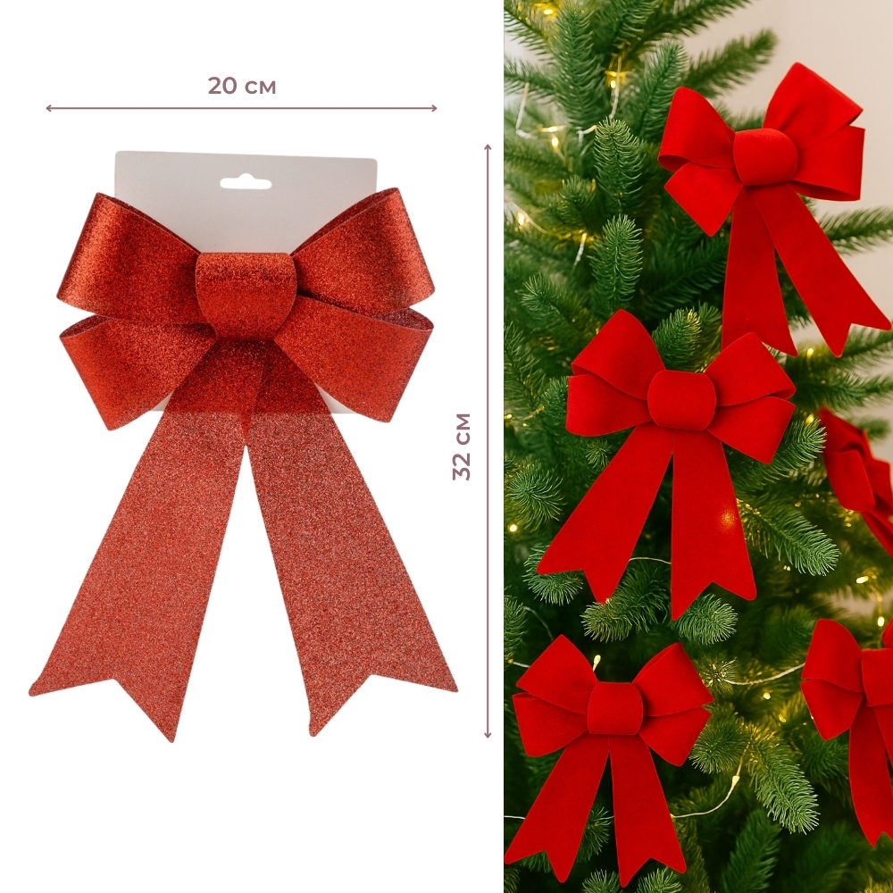 > НОВЫЙ ГОД > Новогодние игрушки > Новогодние банты > Бант "Блестящий красный", 32 см (9245-010)