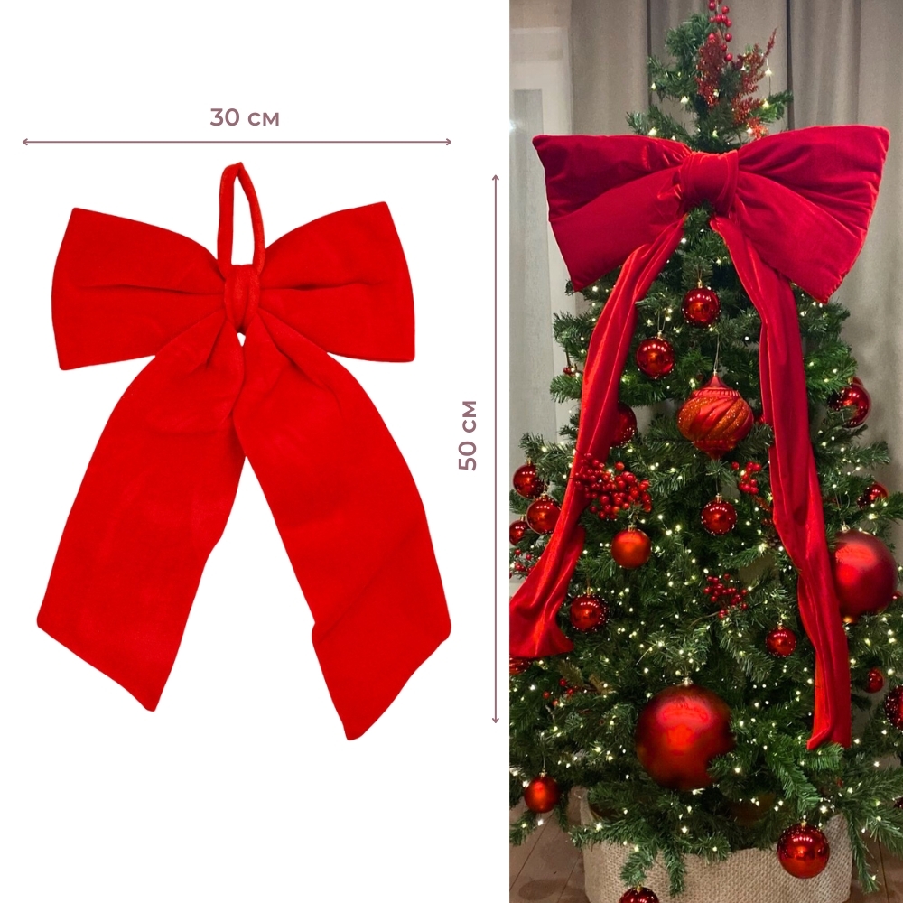 > НОВЫЙ ГОД > Новогодние игрушки > Новогодние банты > Бант "Красный бархат", 50 см (9245-021)
