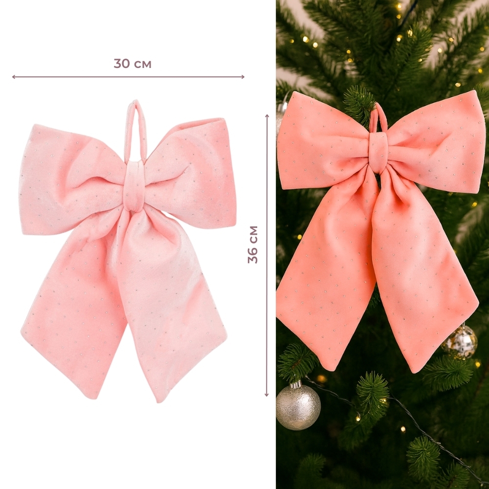 > НОВЫЙ ГОД > Новогодние игрушки > Новогодние банты > Бант "Розовый бархат", 36 см (9245-028)