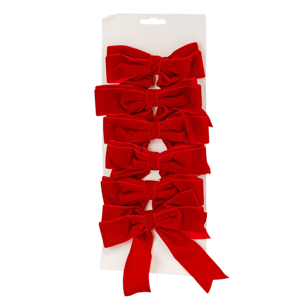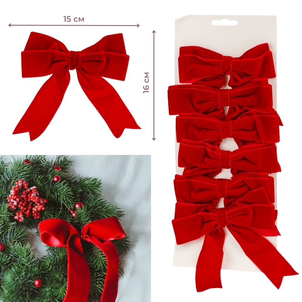 > НОВЫЙ ГОД > Новогодние игрушки > Новогодние банты > Набор бантов "Красный бархат" (6 шт), 16 см (9245-031)