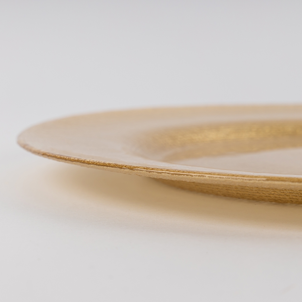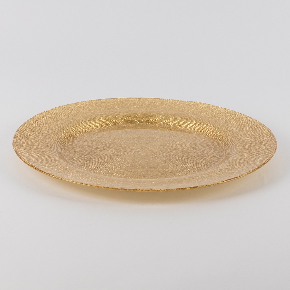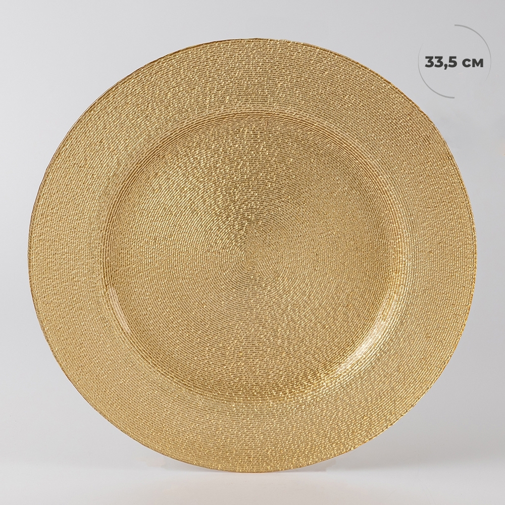 Диаметр тарелки – 33,5 см, высота - 2,5 см. Декоративная стеклянная тарелка золотого цвета с эффектным искристым напылением. Изысканный дизайн и благородный блеск делают её идеальным выбором для свадеб, праздничных ужинов, фуршетов или сервировки в ресторане. Тарелка станет стильным акцентом в вашей подаче, создавая атмосферу тепла и торжественности.