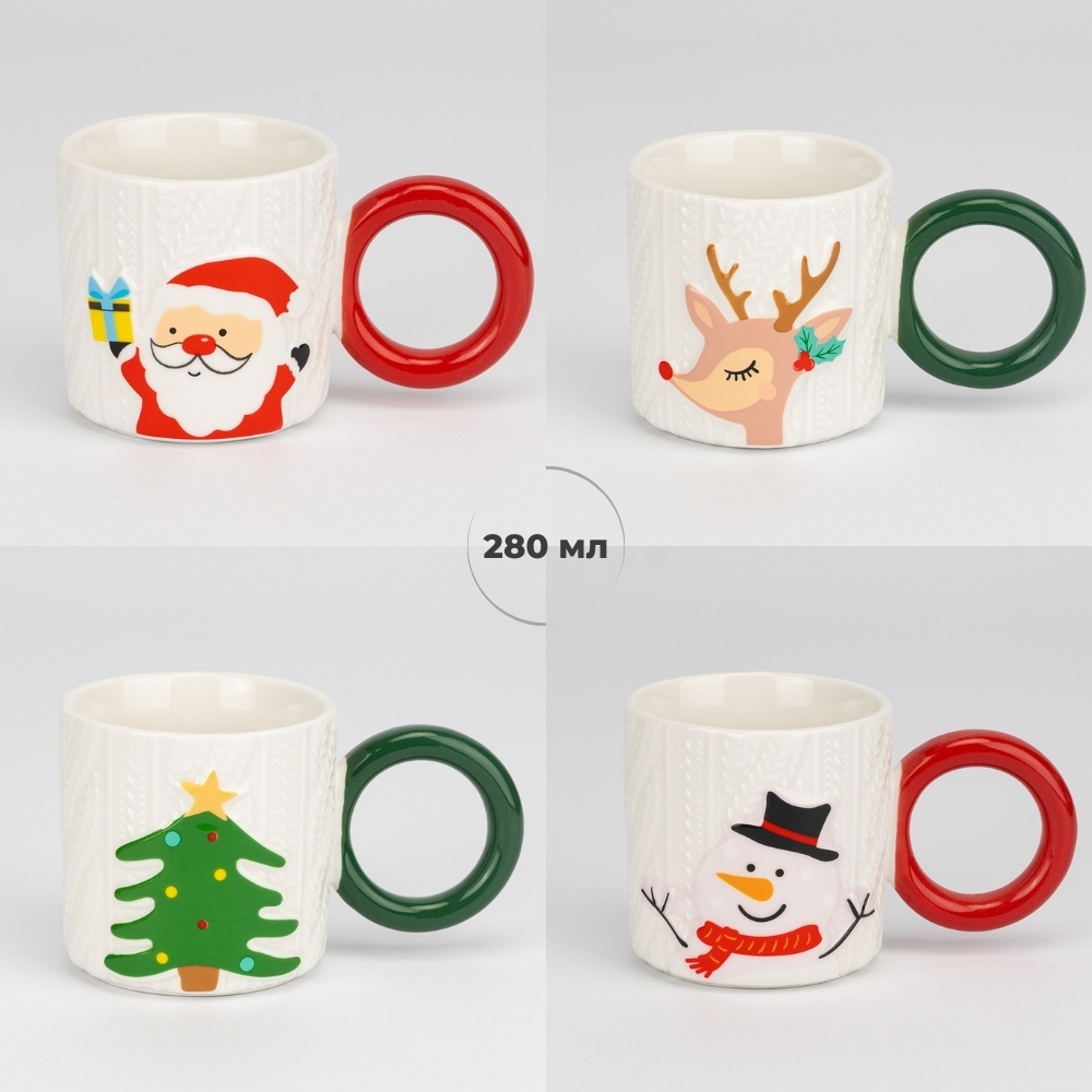 Обьем - 280 мл. Керамическая новогодняя кружка – это идеальная атмосферная посуда для зимних вечеров. Изготовлена из высококачественной керамики, эта кружка украшена яркими тематическими изображениями. Удобная ручка и объемный объем делают ее идеальной для горячего шоколада, чая или кофе. Кружка добавляет рождественского настроения и уюта, делая каждое чаепитие особенным.