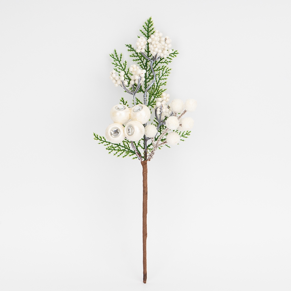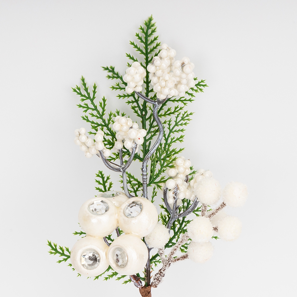> Декоративная ветвь "Белые ягоды", 31 см (9257-008)