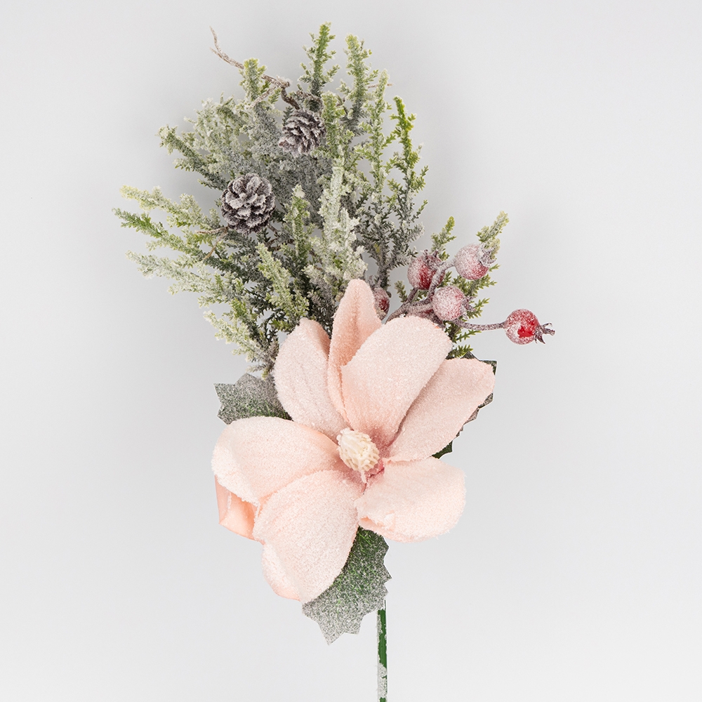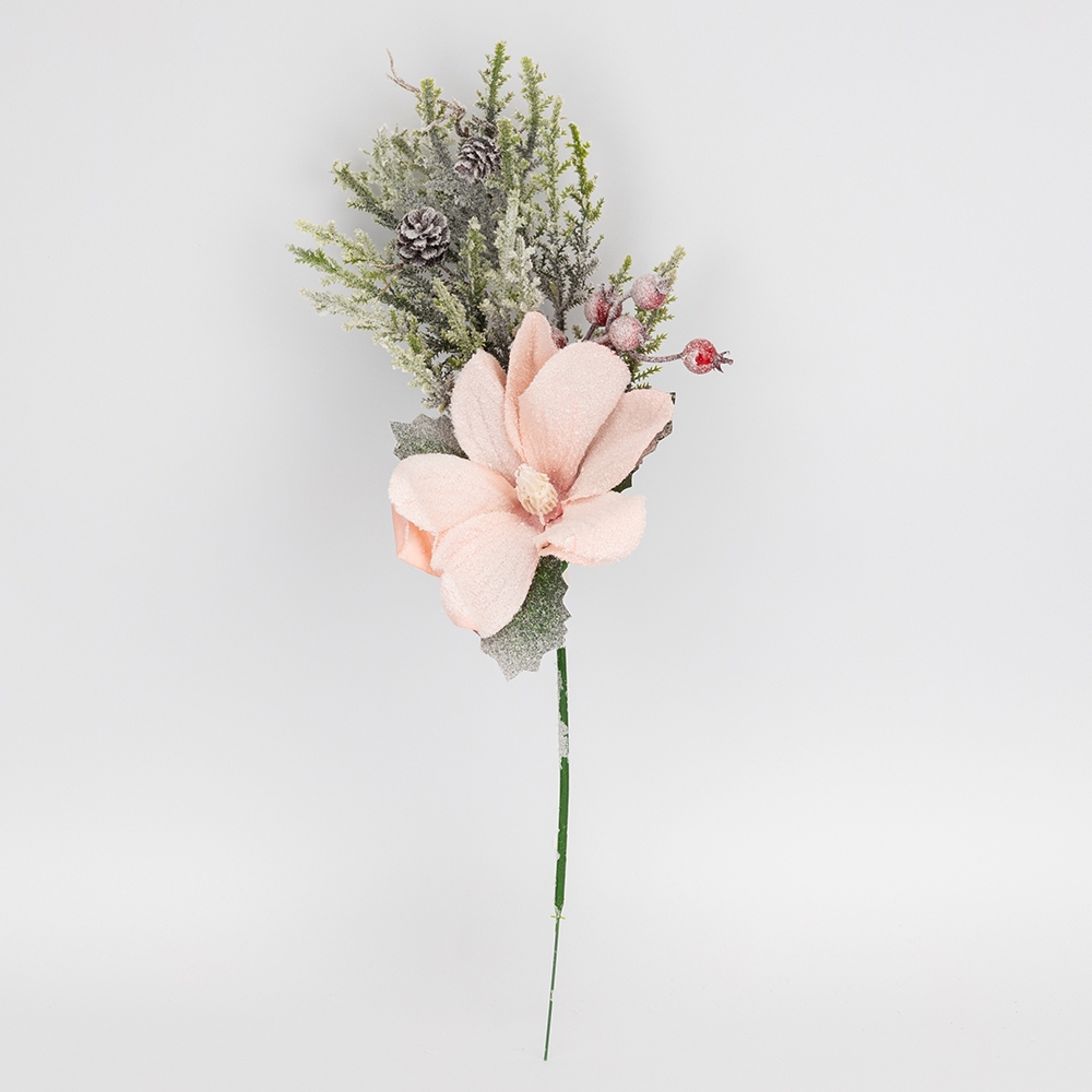 Декоративная ветвь "Заснеженная магнолия", розовая, 47 см (9258-022)
