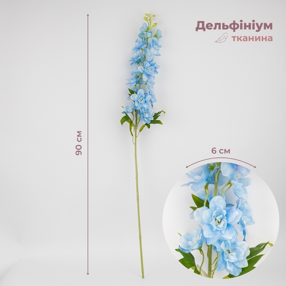 Высота - 90 см. Диаметр бутона - 6 см. Искусственный дельфиниум - это удивительная реплика этого элегантного цветка, которая воспроизводит ее непревзойденную красоту и грацию. Его цветки имеют естественную форму, цвет и текстуру, что почти не отличает их от живых. Искусственный дельфиниум не нуждается в поливе, образовании особого ухода, который нуждается в живом экземпляре этого цветка. Он всегда сохраняет свой привлекательный вид, не зависимо от условий окружающей среды. живого шарма любому пространству. Искусственный дельфиниум остается неизменным в течение длительного времени, не утрачивая свою красоту и свежесть.