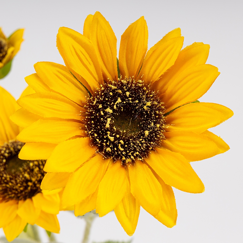 Обратите внимание, что в результате недавней атаки дронов часть партии имеет незначительный аромат гари, который полностью выветривается в течение короткого времени. Высота – 64 см, диаметр больших бутонов – 9 см. Цветы и листья выполнены из ткани, стебли – из пластика. Искусственный подсолнух – это стильный и универсальный элемент декора, который сохраняет свою красоту без необходимости ухода. Его реалистичные лепестки, текстурированные листья и детально проработанная сердцевина создают эффект живого цветка. Благодаря крепкому стеблю его можно использовать как отдельно, так и в композициях для оформления интерьера или праздничных мероприятий.