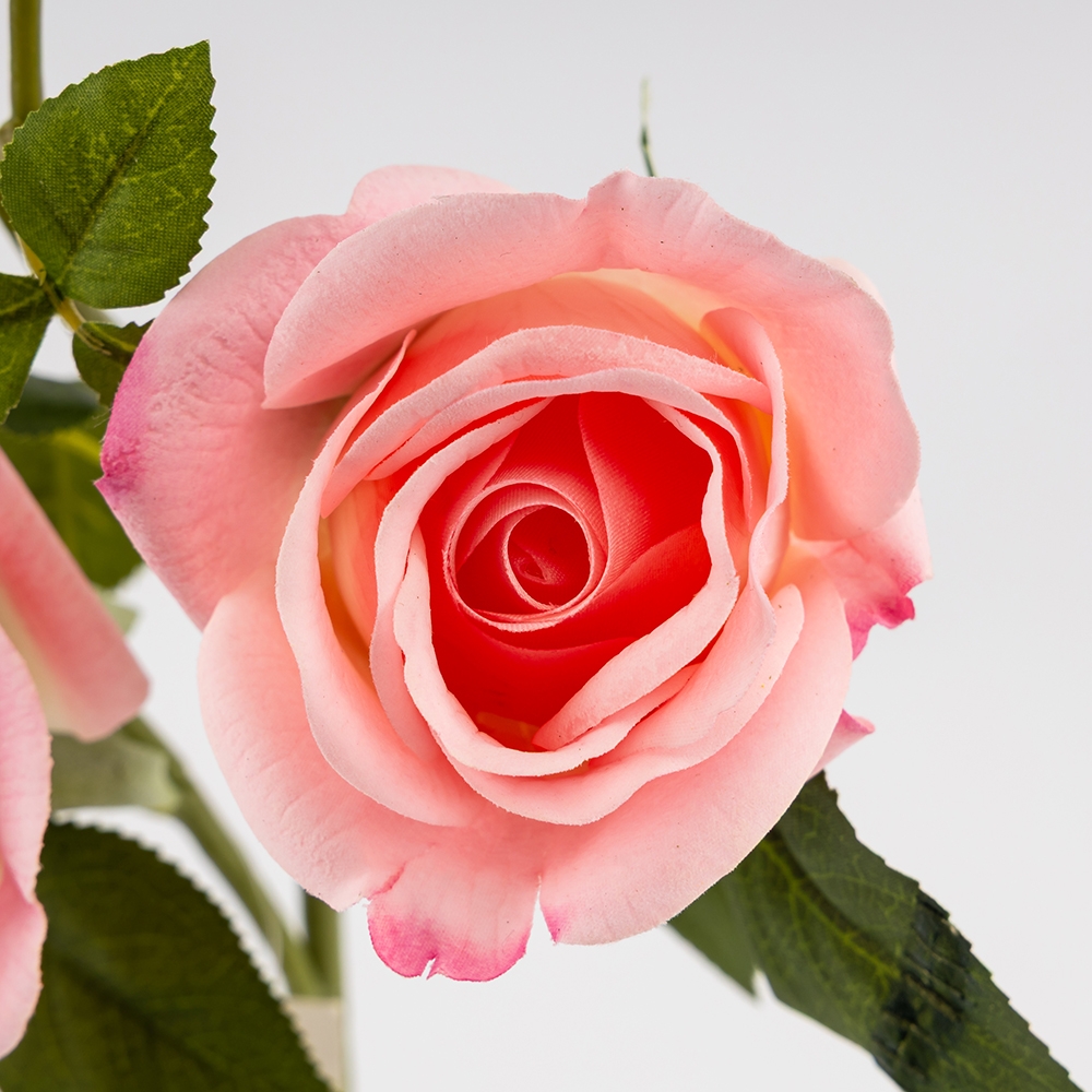 Высота – 60 см, 3 цветка, раскрытые розы – 7 см в диаметре. Искусственная роза из латекса в нежном оттенке выглядит элегантно и естественно. Цветы имеют реалистичную форму с объемными лепестками, что придает им легкость и воздушность. Идеально подходит для оформления интерьеров, свадебного декора или флористических композиций.