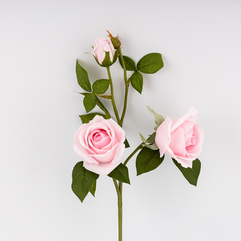 Высота – 60 см, 3 цветка, раскрытые розы – 7 см в диаметре. Искусственная роза из латекса в нежном оттенке выглядит элегантно и естественно. Цветы имеют реалистичную форму с объемными лепестками, что придает им легкость и воздушность. Идеально подходит для оформления интерьеров, свадебного декора или флористических композиций.