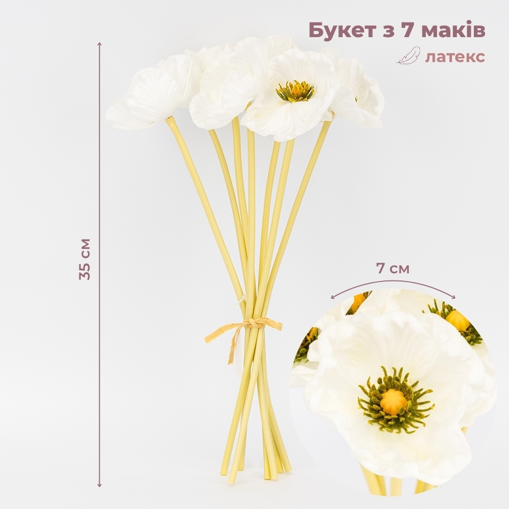 Букет маков, 7 бутонов, белый, 35 см СПАСЕННАЯ ПОЗИЦИЯ (9259-081)