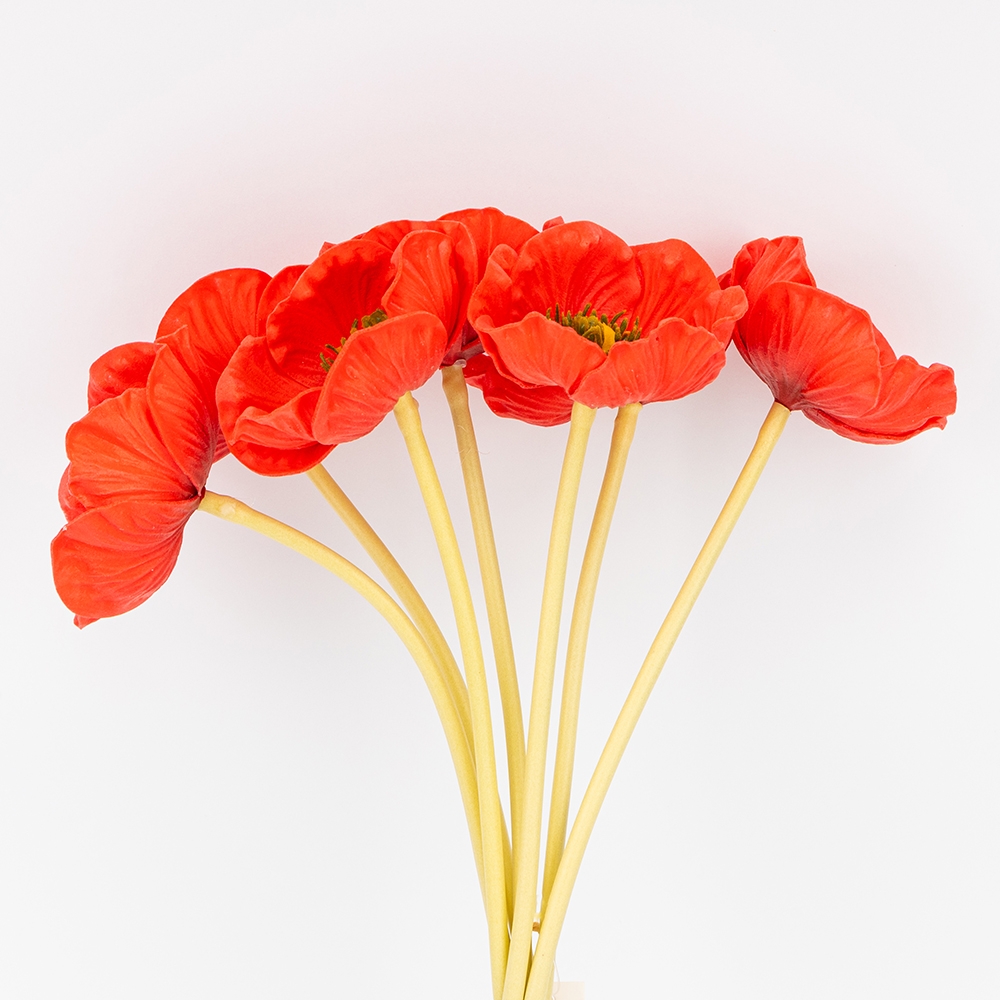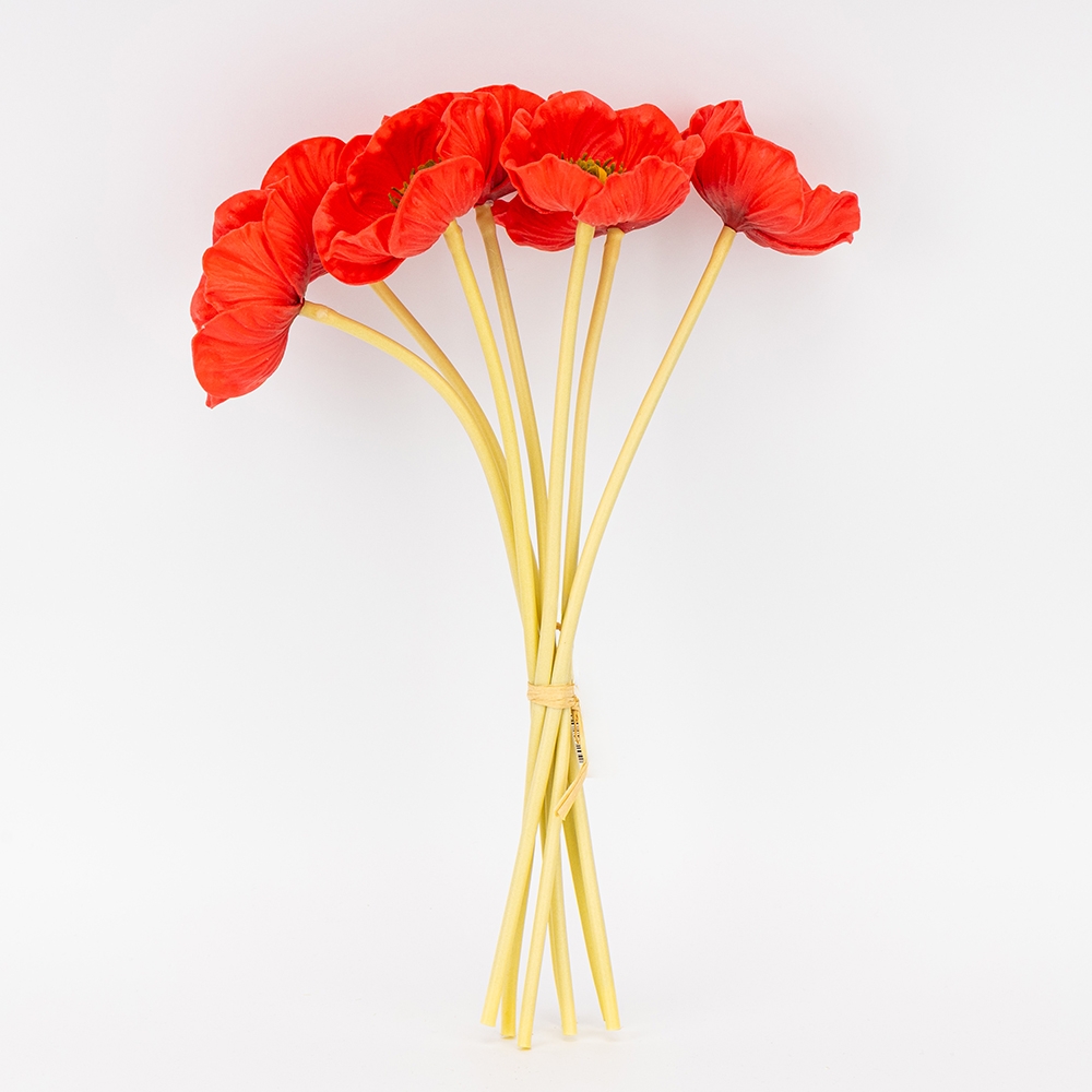 > Букет маков, 7 бутонов, красный, 35 см СПАСЕННАЯ ПОЗИЦИЯ (9259-082)
