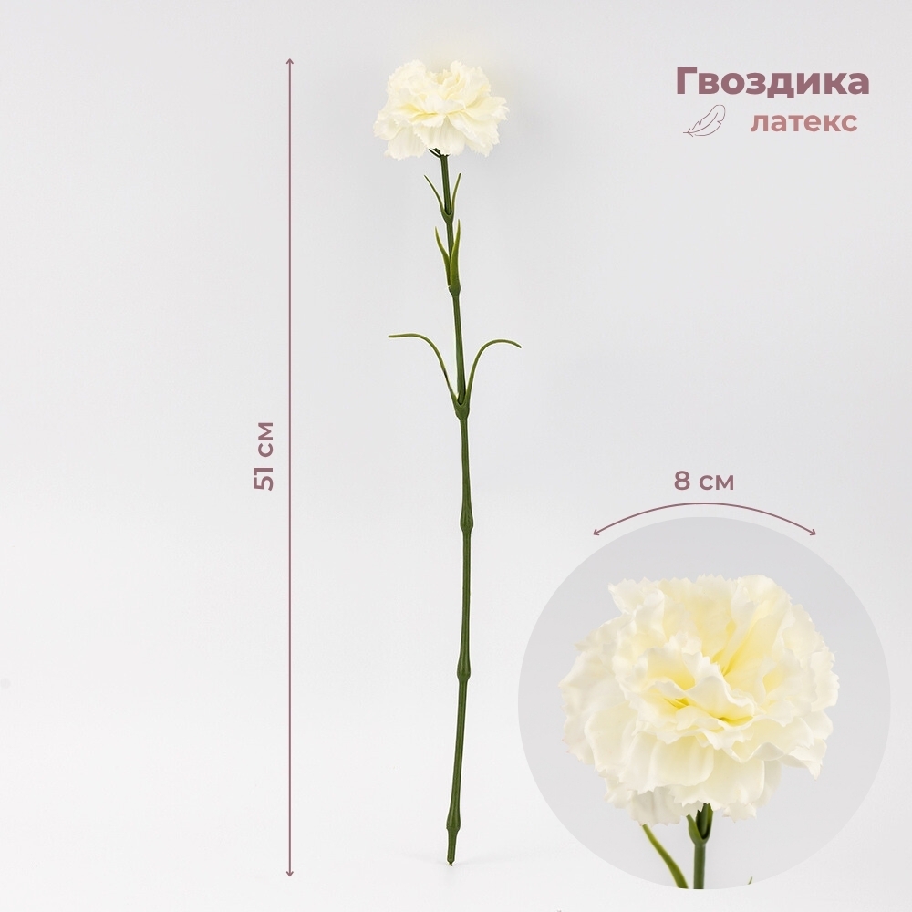 Искусственная гвоздика, белая, 51 см (9259-089)