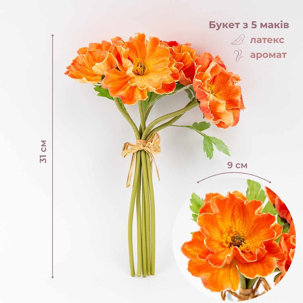 Букет маков, 5 бутонов, оранжевый, 31 см (9259-140)