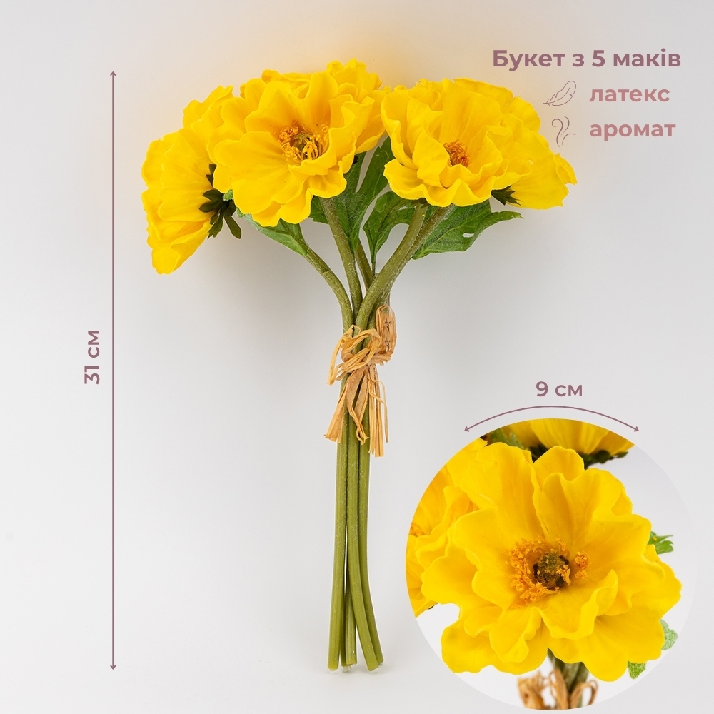 Букет маков, 5 бутонов, желтый, 31 см (9259-143)