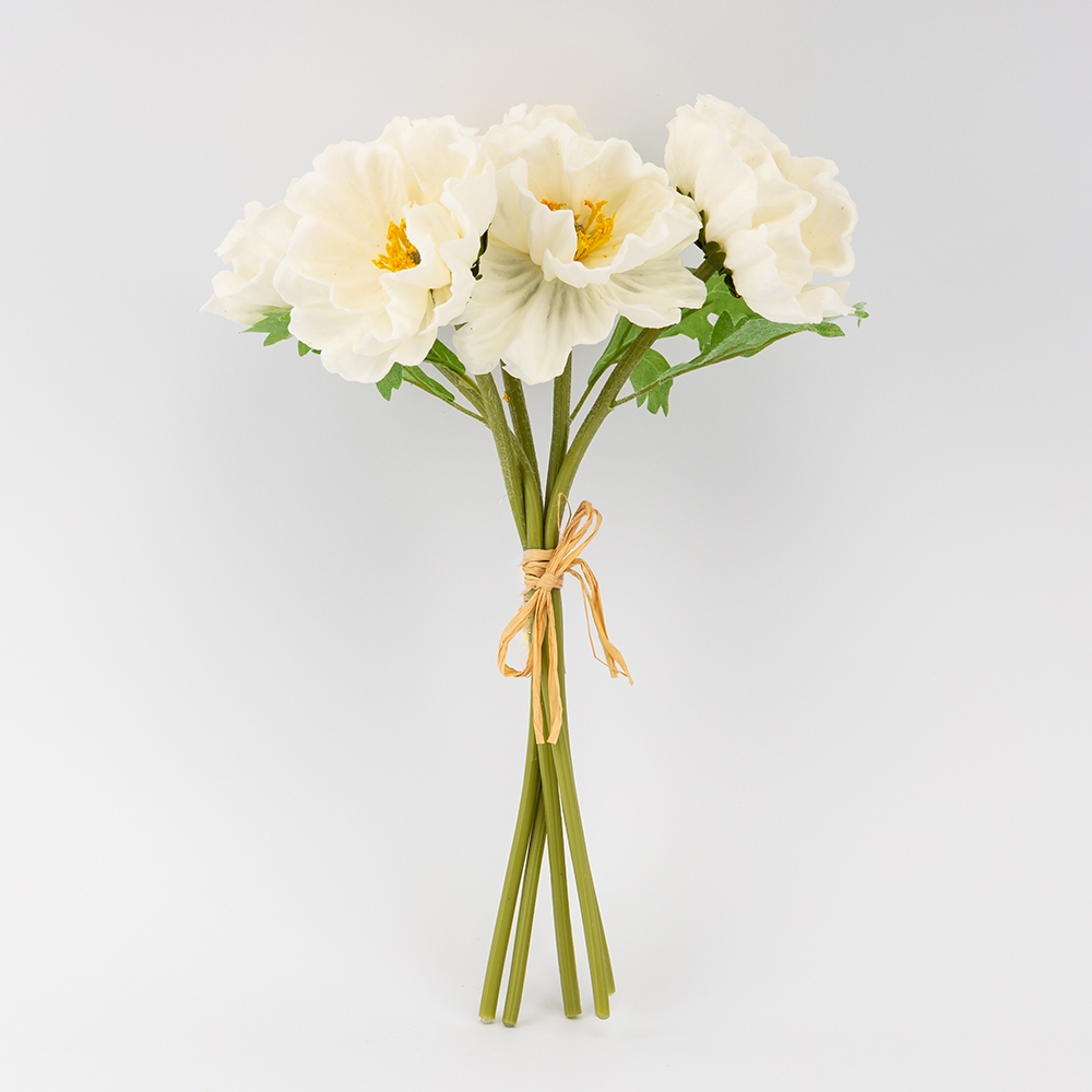 > Букет маков, 5 бутонов, белый, 31 см (9259-144)