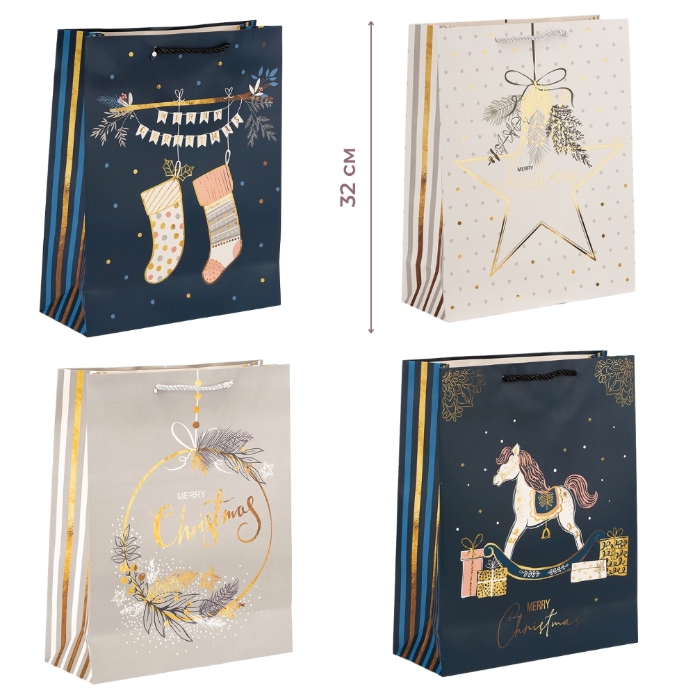 В упаковке 12 пакетов разного дизайна. Подарочный пакет создает особую атмосферу ожидания и радости, подчеркивая значение подарка и делая его принятие еще более особенным и запоминающимся. Бумажный материал придает легкость, но одновременно обеспечивает достаточную прочность для переноски подарков. Этот пакет идеально подходит для упаковки подарков для близких и друзей, даря им теплые чувства праздничной атмосферы. Красивая новогодняя тематика пакета не только сделает его внешне привлекательным, но и создаст настроение ожидания и радости, отражая дух этого волшебного праздника.