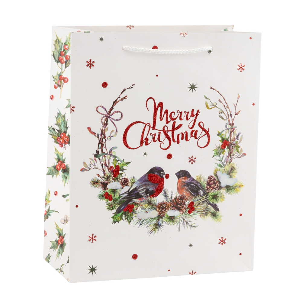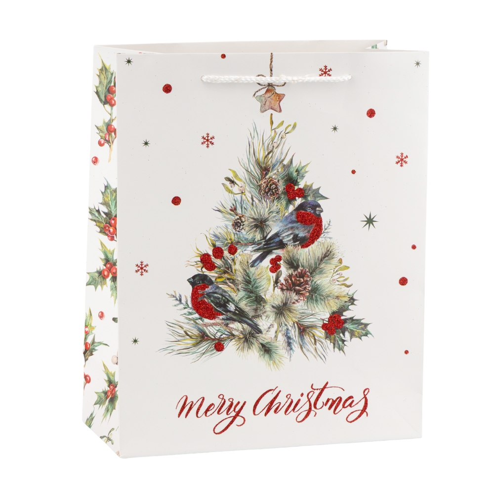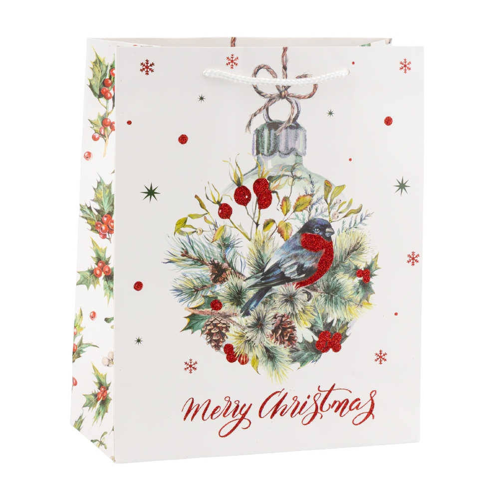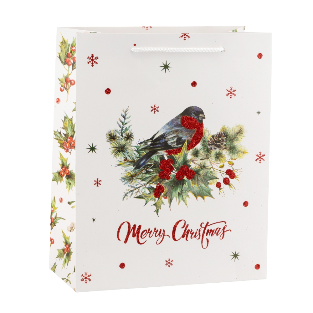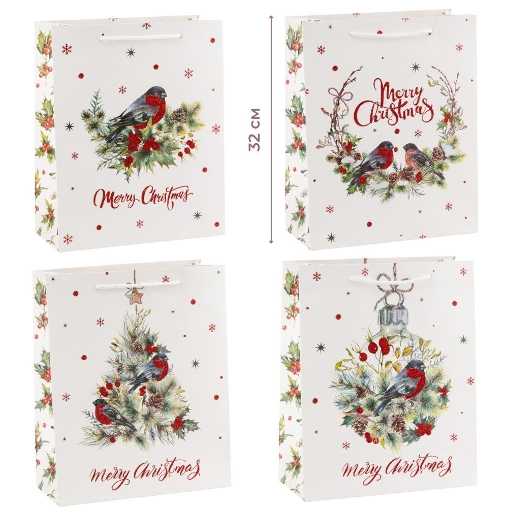 Подарочный пакет "Рождественский снегирь", 26*32 см * Рандомный выбор дизайна (9265-006)
