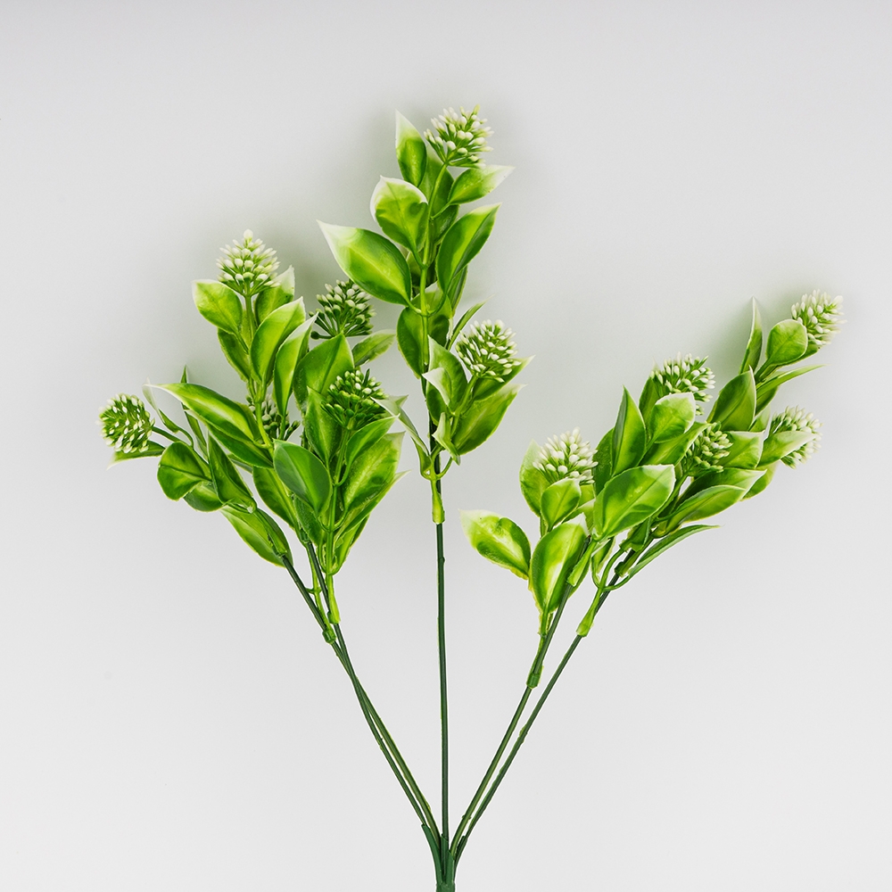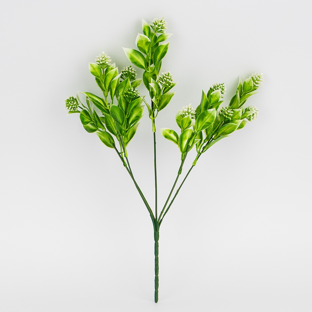 > Искусственная зеленая ветвь с белыми соцветиями, 32 см (9273-013)