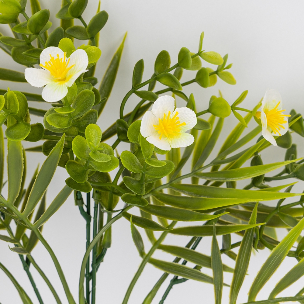 Высота – 35 см. Изысканный искусственный букет с реалистичными цветами белого цвета и декоративной зеленью смотрится естественно и элегантно. Идеален для оформления интерьера, создания праздничной атмосферы или стильной фотозоны. Долговечные материалы гарантируют сохранность безупречного вида без специального ухода.