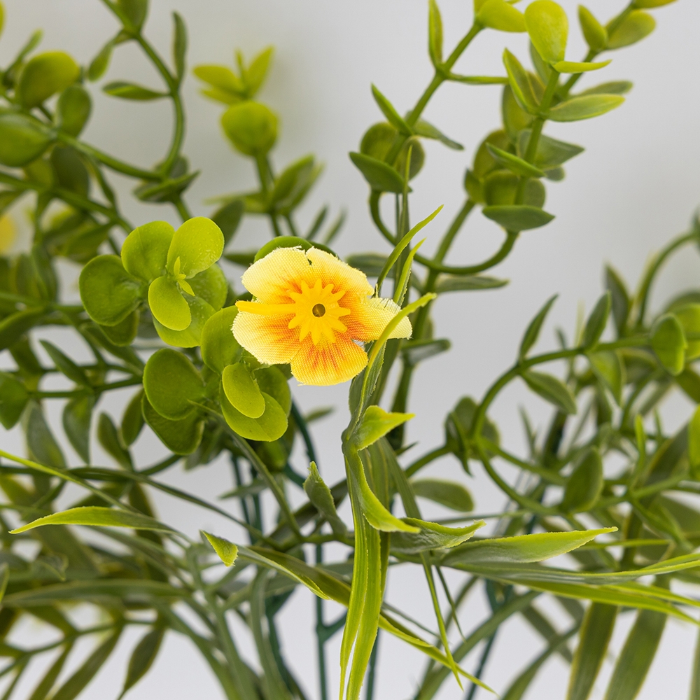 Высота – 35 см. Изысканный искусственный букет с реалистичными цветами желтого цвета и декоративной зеленью смотрится естественно и элегантно. Идеален для оформления интерьера, создания праздничной атмосферы или стильной фотозоны. Долговечные материалы гарантируют сохранность безупречного вида без специального ухода.