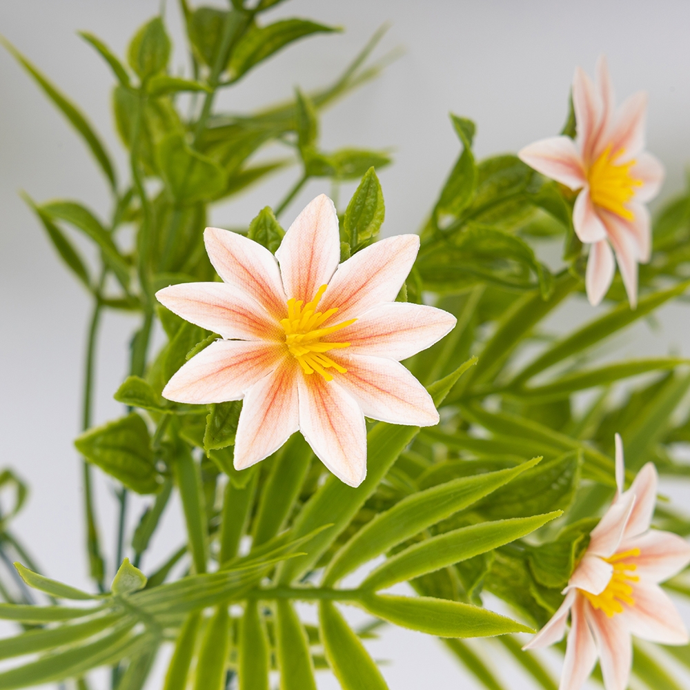 Высота – 35 см. Изысканный искусственный букет с реалистичными цветами бело-кораллового цвета и декоративной зеленью смотрится естественно и элегантно. Идеален для оформления интерьера, создания праздничной атмосферы или стильной фотозоны. Долговечные материалы гарантируют сохранность безупречного вида без специального ухода.