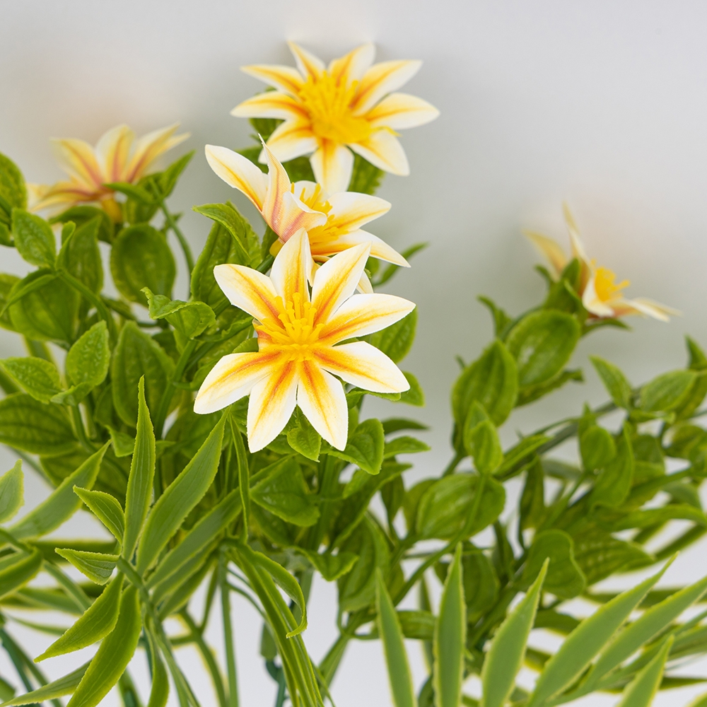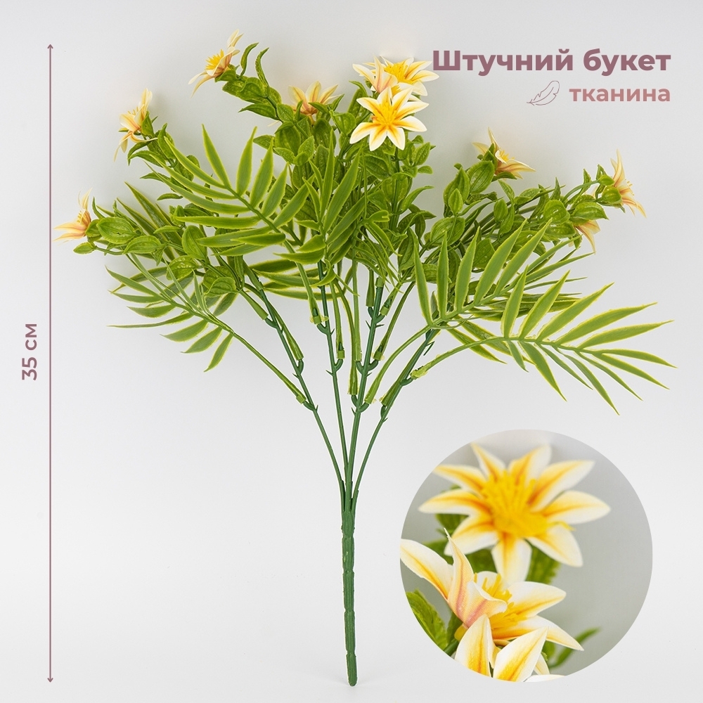 Высота – 35 см. Изысканный искусственный букет с реалистичными цветами бело-оранжевого цвета и декоративной зеленью смотрится естественно и элегантно. Идеален для оформления интерьера, создания праздничной атмосферы или стильной фотозоны. Долговечные материалы гарантируют сохранность безупречного вида без специального ухода.