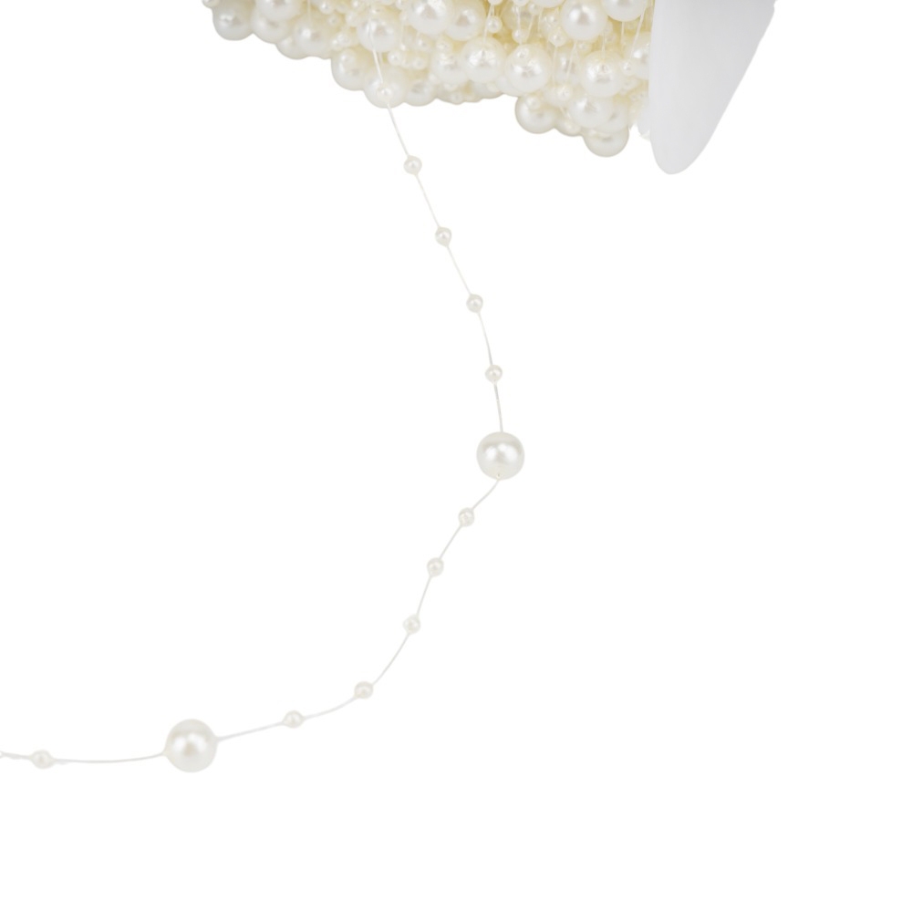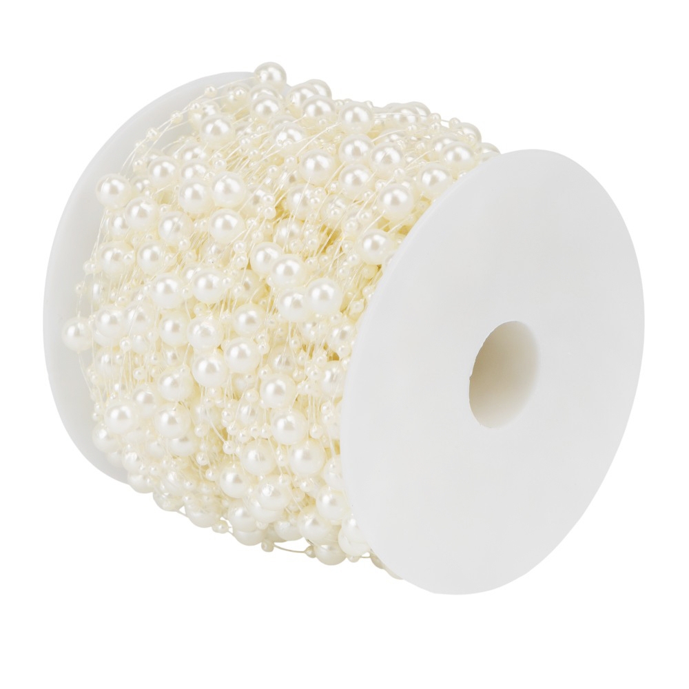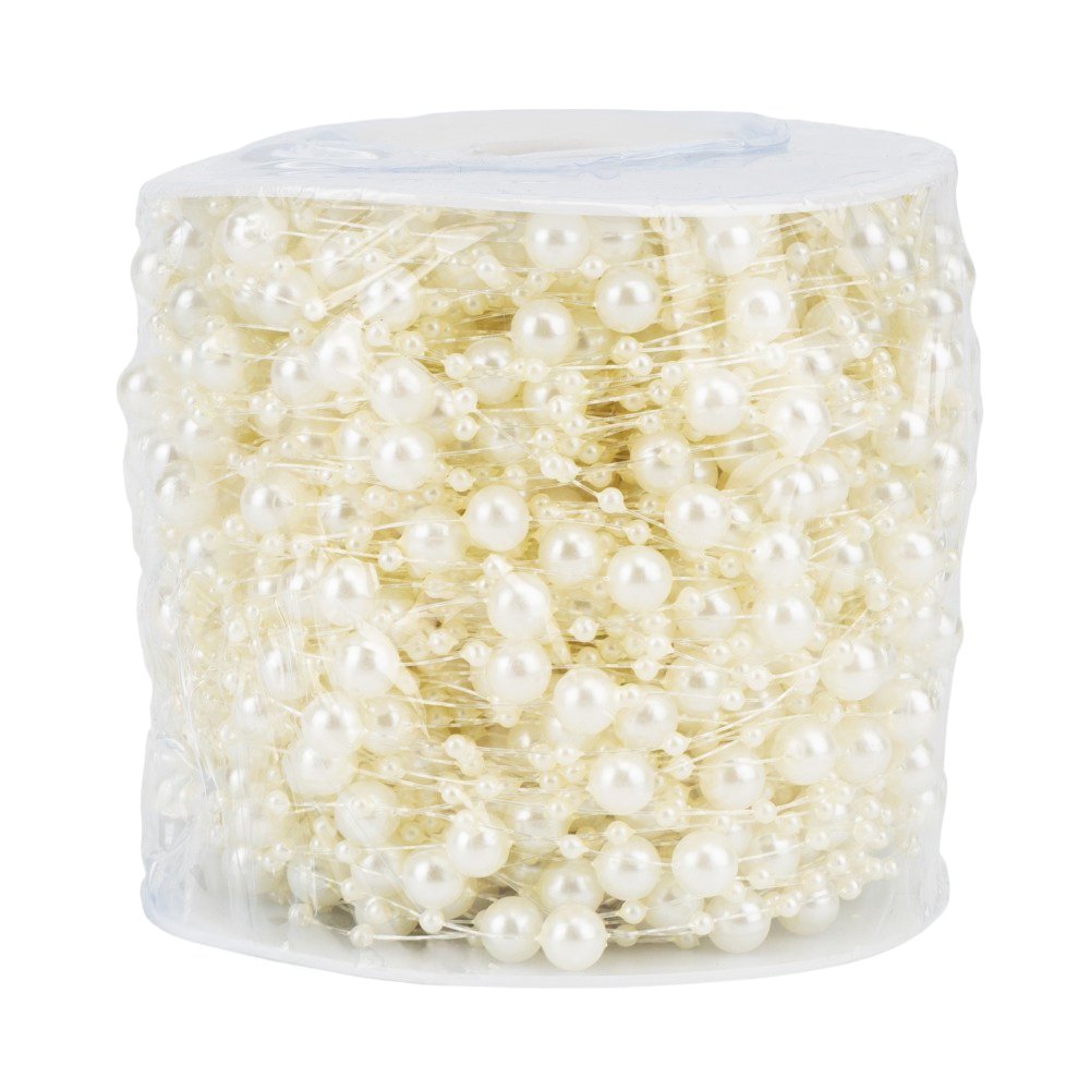Гирлянда из бусин на леске, кремовая, 15 м (9275-006)