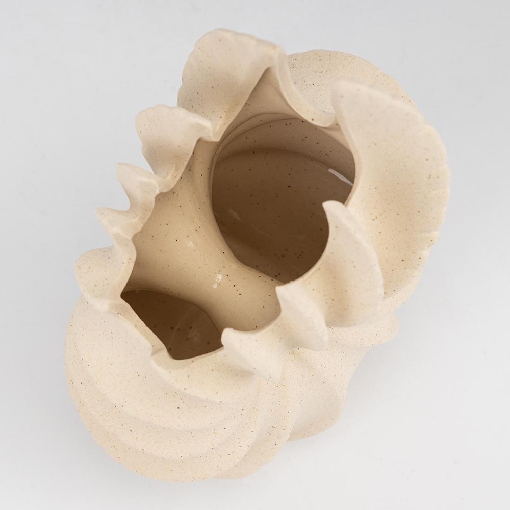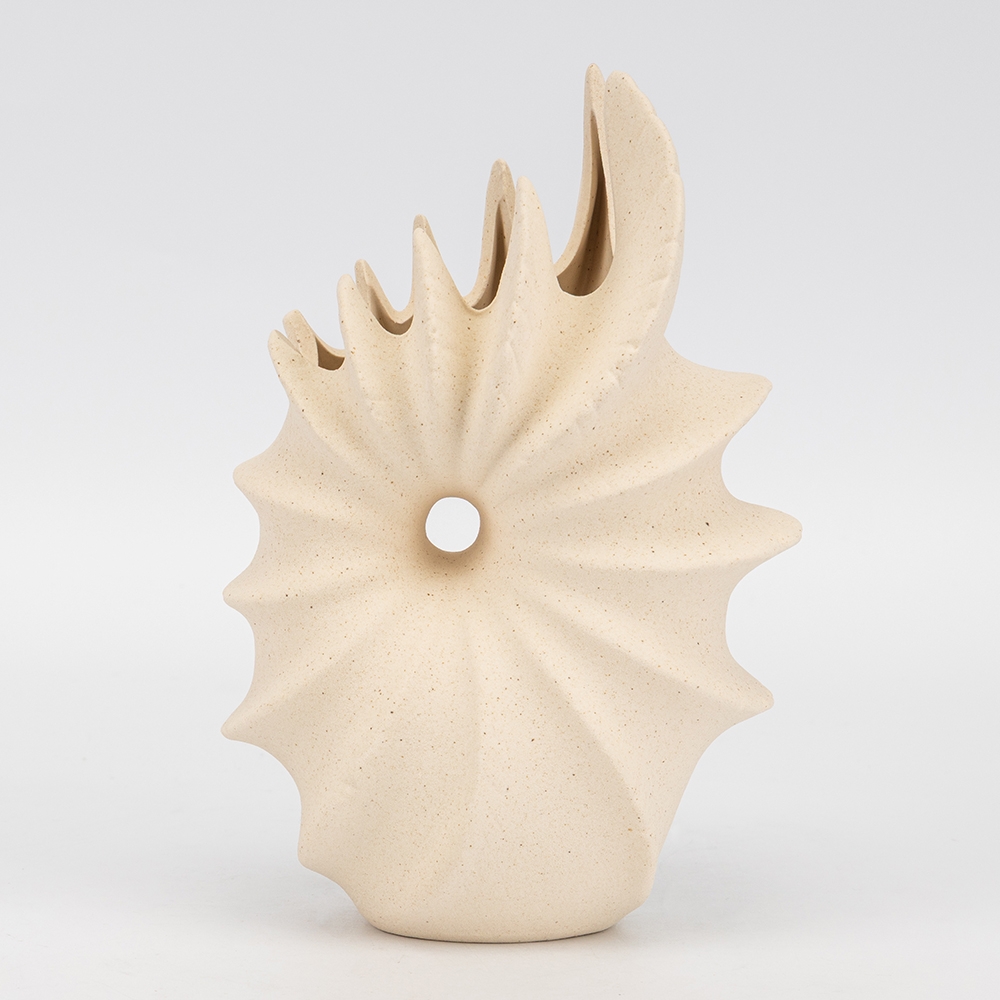 Высота – 21 см, ширина – 8 см, длина – 18 см. Керамическая ваза – идеальный способ украсить ваш дом, офис или фотостудию. Это изделие сочетает элегантный, скульптурный дизайн и высокую практичность. Эта ваза вдохновлена морской тематикой и природными формами океана, что делает ее ярким акцентом, придающим интерьеру уникальную текстуру и визуальную динамику.