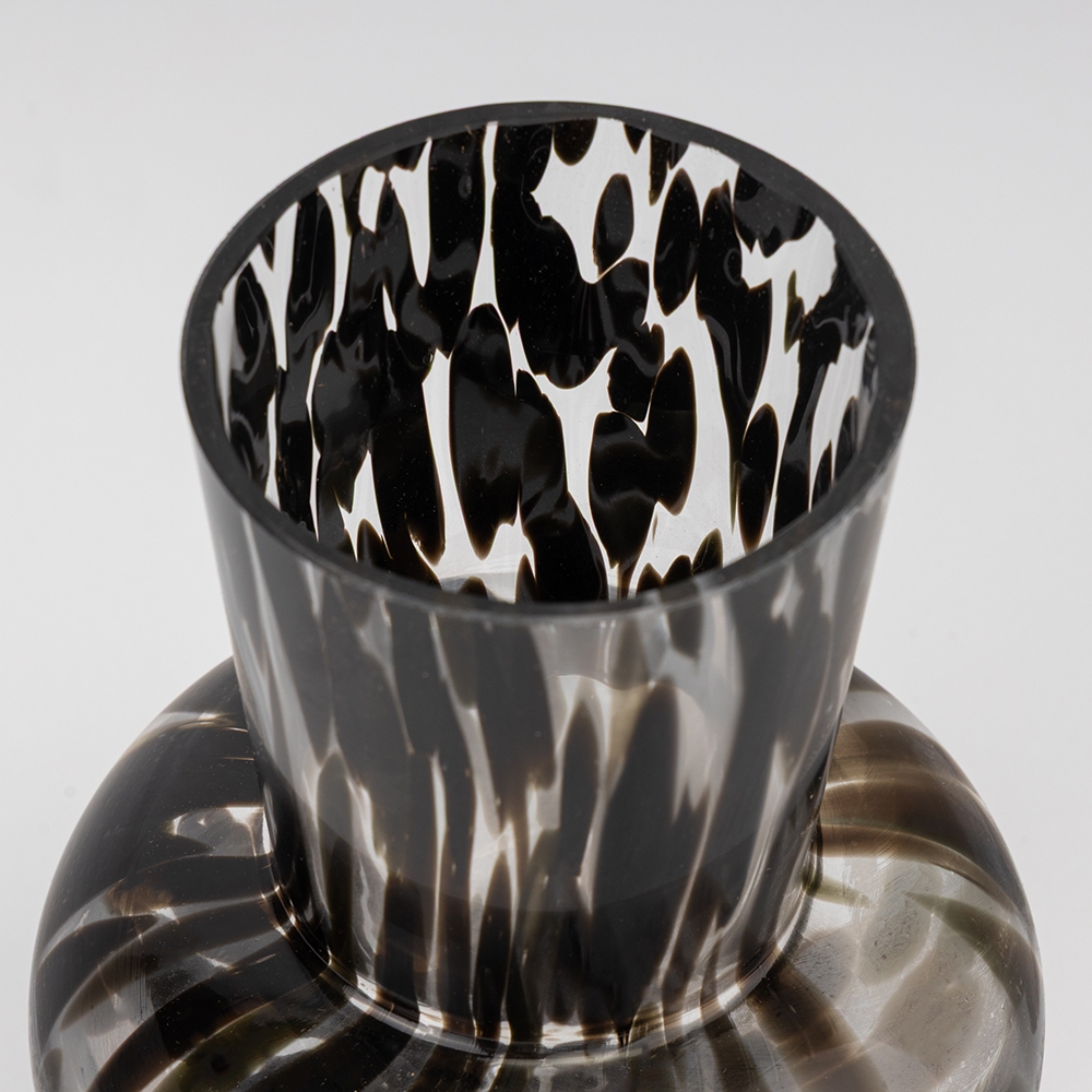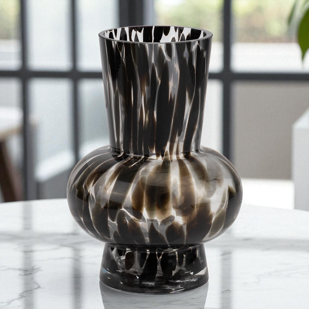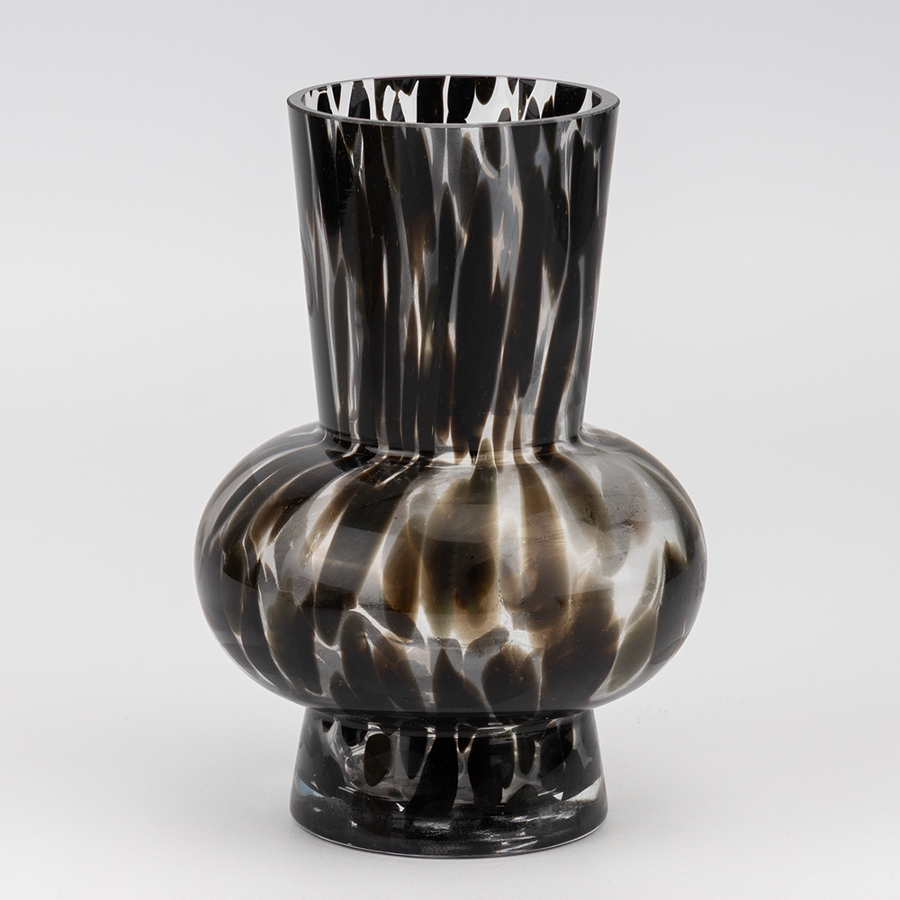 Высота - 21 см, диаметр - 12 см. Диаметр горлышка - 9 см. Эта стеклянная ваза выполнена в уникальной технике с эффектом капель и плавных цветовых переходов. Она сочетает в себе элегантность ручной работы и современный дизайн, становясь ярким акцентом в любом интерьере. Благодаря своей форме и узору ваза подчёркивает красоту цветочных композиций или может служить самостоятельным декоративным элементом. Такая ваза идеально подойдёт для дома, ресторанов, отелей или стильных фотозон.