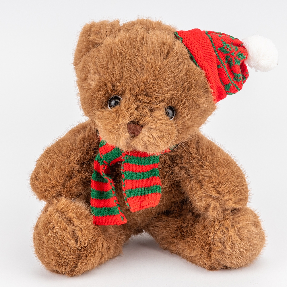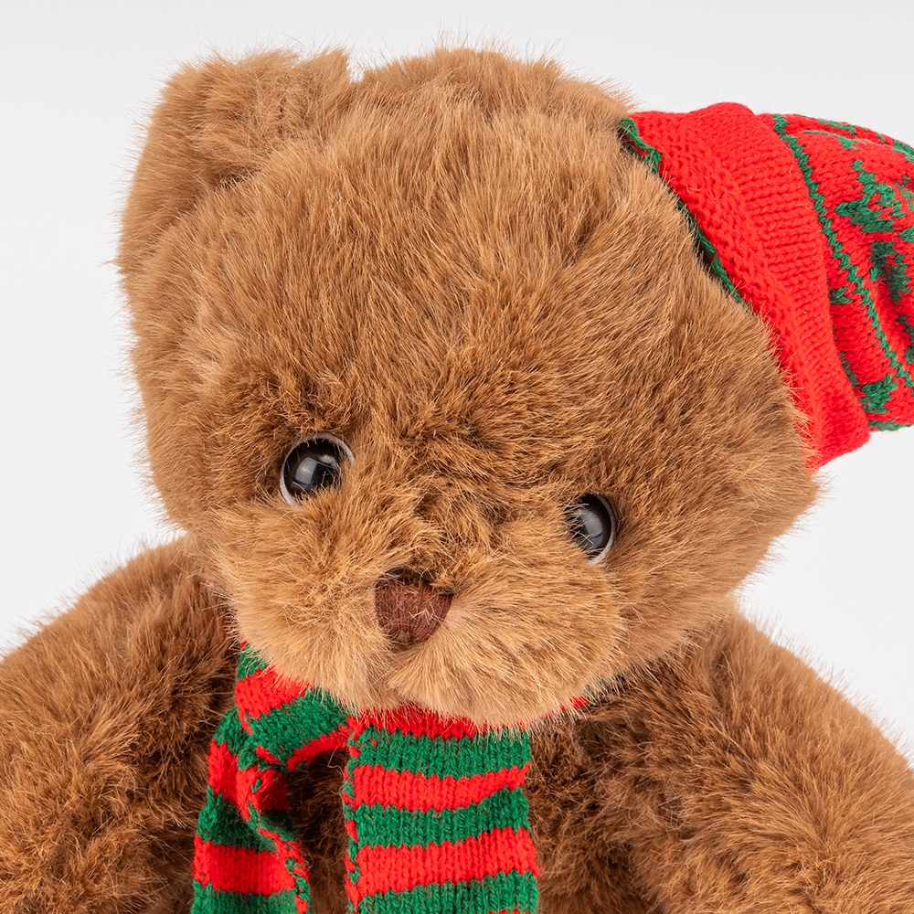 Пушистый мишка в ярких праздничных одеждах — настоящее воплощение уюта и тепла! Мягкий плюшевый мех приятный на ощупь, а красно-зеленый шарфик и шапочка придают игрушке новогоднего настроения. Идеально подходит как подарок детям и взрослым или как милое дополнение к праздничному декору.