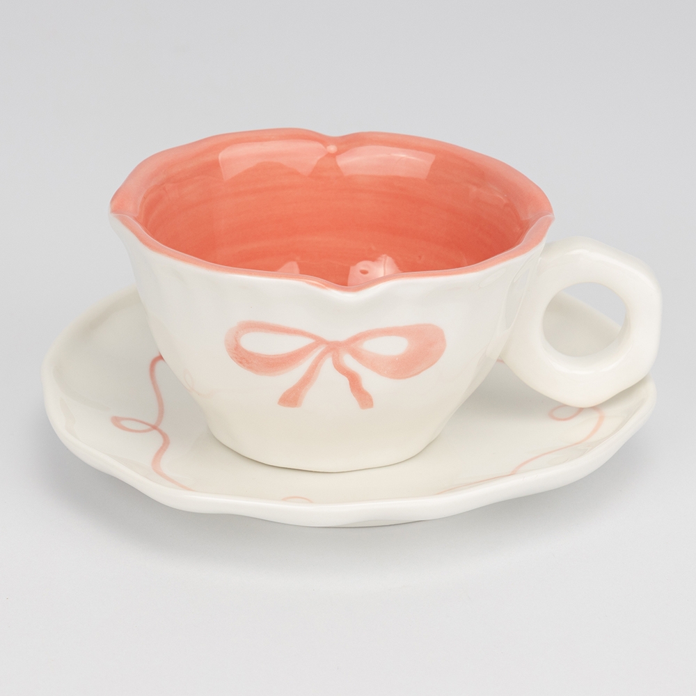 Чашка с блюдцем «Персиковый бантик», 200 мл (9295-013)
