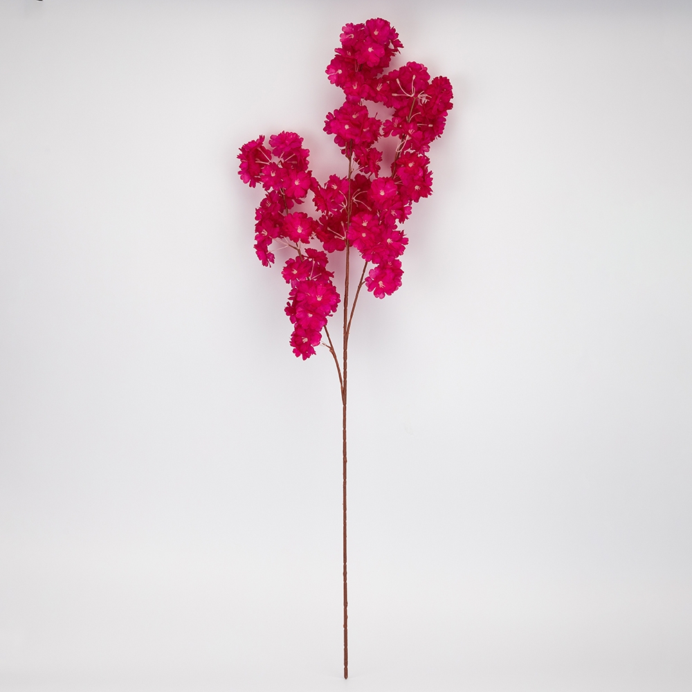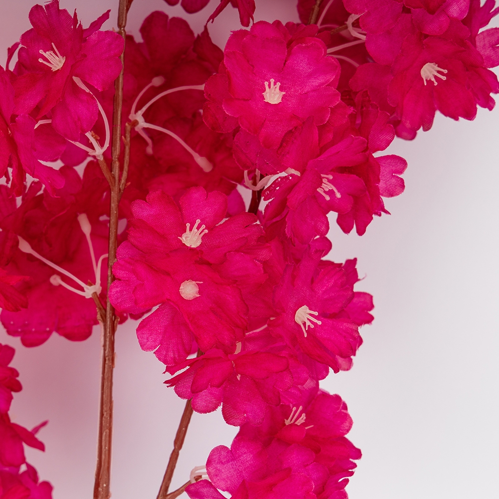 Высота – 96 см, диаметр цветка – 5 см. Выполнена из ткани. Искусственная ветка с нежными цветами выглядит элегантно и реалистично, придавая простору весеннему настроению. Благодаря гибкому стеблю его легко адаптировать для оформления интерьера, фотозон или праздничных композиций. Высота делает ее идеальным выбором для ваз, арок и декоративных инсталляций.