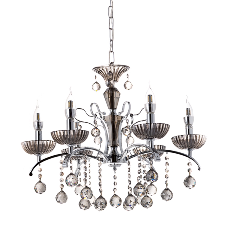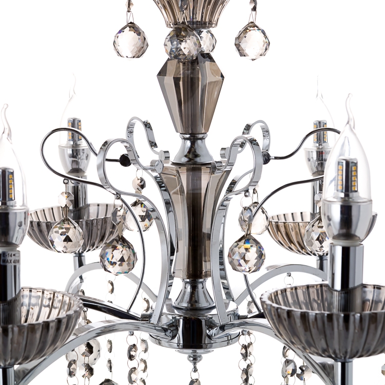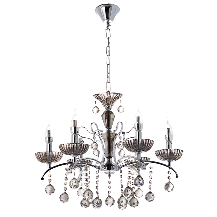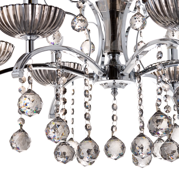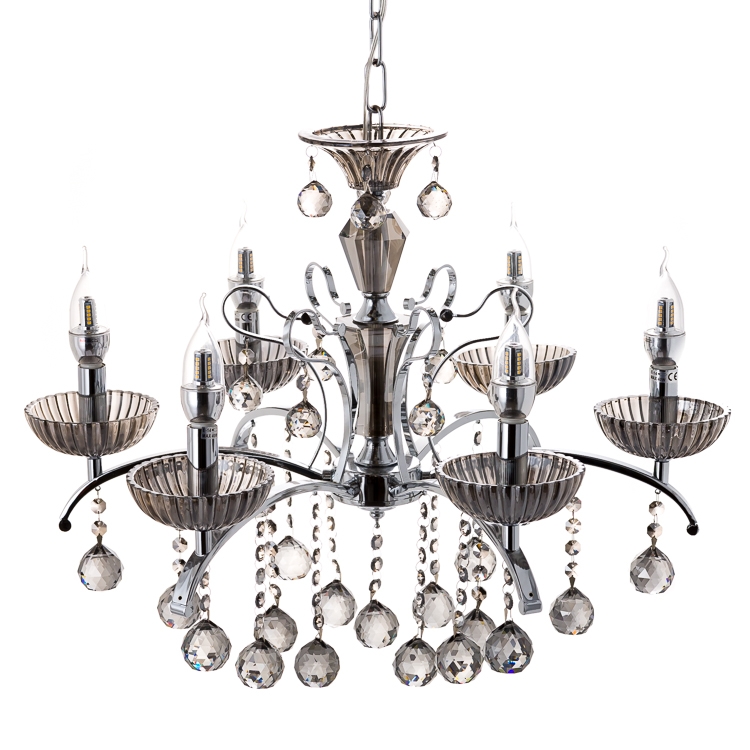 > Люстра классическая с круглыми камнями на 6 плафонов цвета графит (OU023/6/chrom+SMK) (OU023/6/chrom+SMK)